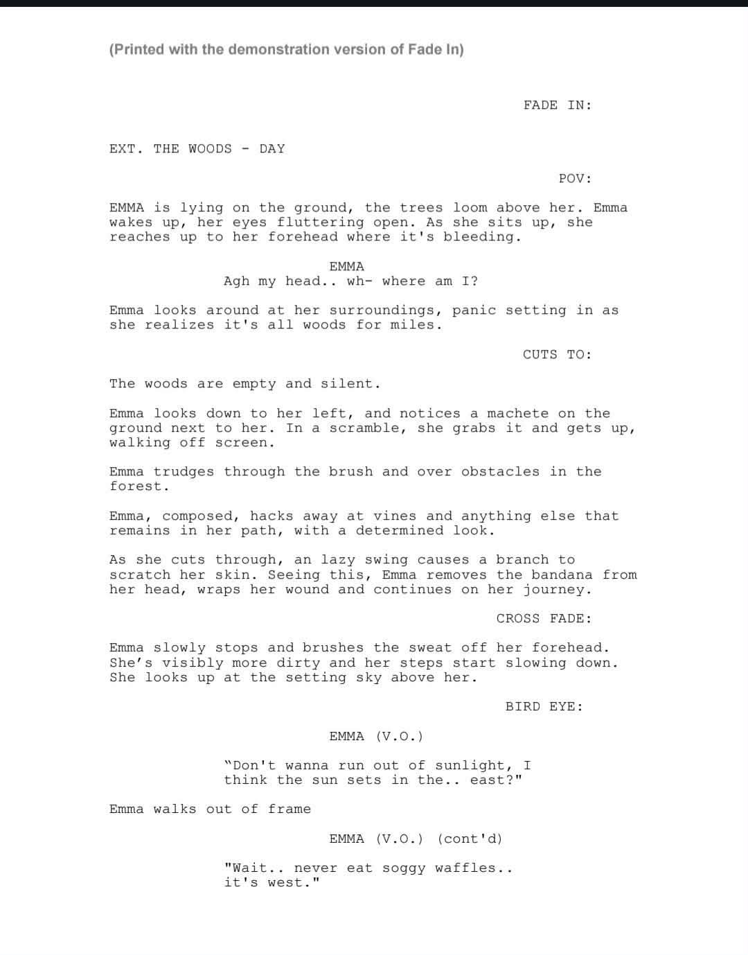 A girl wakes up lost in the woods injured and has to find her way back.